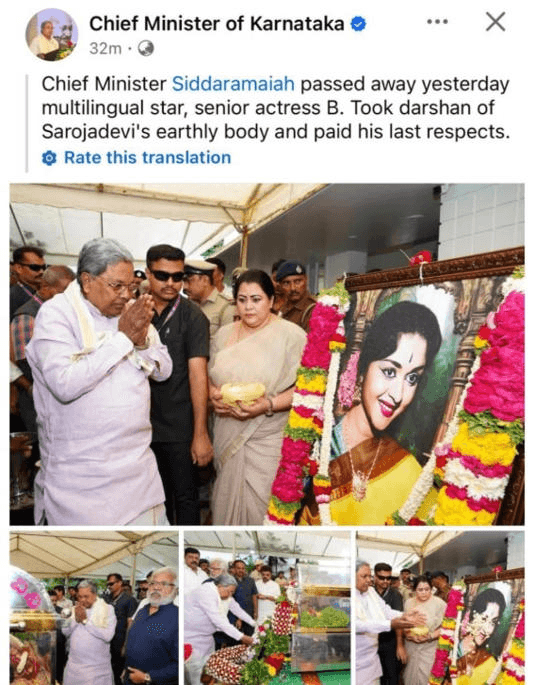 मूल कन्नड़ पोस्ट का अंग्रेजी अनुवाद कुछ इस प्रकार आया:“Chief Minister Siddaramaiah passed away yesterday multilingual star, senior actress B. Took darshan of Saroja devi’s earthly body and paid his last respects.” इस अनुवाद ने सोशल मीडिया पर भ्रम फैला दिया और लोगों में चिंता की लहर दौड़ गई.