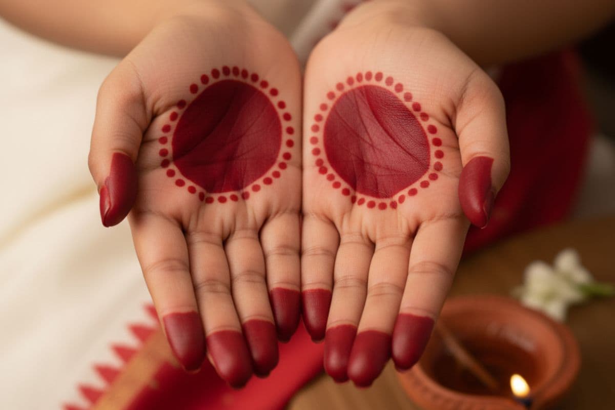 भरी हथेली वाला आलता-कुमकुम मेहंदी डिजाइन | Palm Alta Mehndi Design