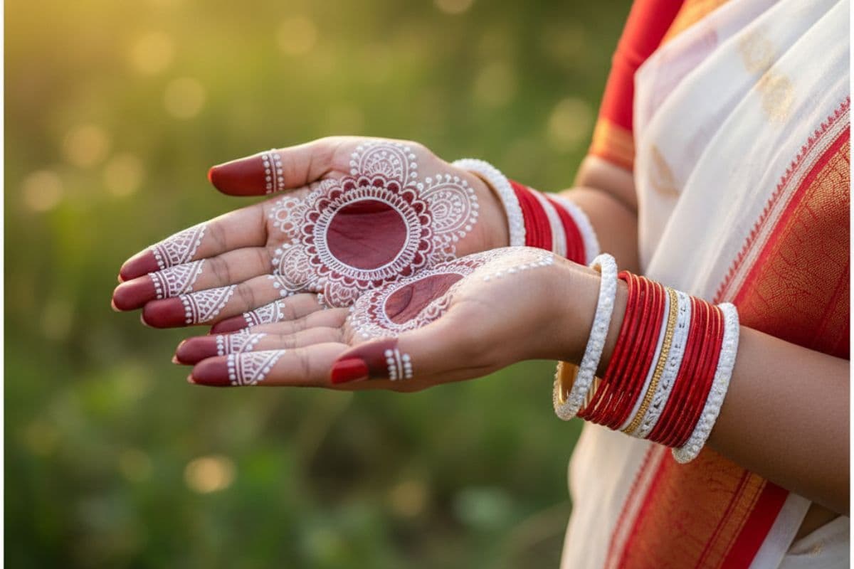 AI Alta Mehndi Design: नवरात्रि यानी दुर्गा पूजा भारत में बड़े ही धूमधाम से मनाया जा रहा है. वहीं, पश्चिम बंगाल की नवरात्रि पूरे भारत में फेमस है. नवरात्रि के दौरान महिलायें नई-नई साड़ी-सूट पहनती हैं और अच्छे से तैयार होती हैं. साथ ही इस दौरान महिलाएं अपने हाथों में मेहंदी भी लगाती हैं. मेहंदी महिलाओं के लुक को और भी निखार देती है. ऐसे में दुर्गा पूजा के दौरान बंगाली मेहंदी डिजाइन काफी ट्रेंड में रहता है. क्योंकि, इस डिजाइन को लगाने के लिए मेहंदी नहीं बल्कि आलता और कुमकुम का इस्तेमाल किया जाता है. आलता से हाथों में सिंपल सी डिजाइन बनाई जाती है, जो हाथों की सुंदरता को और भी निखार कर रख देती है. ऐसे में अगर आप भी इस दुर्गा पूजा अपने लुक को पूरा करने के लिए बंगाली मेहंदी डिजाइन लगाना चाहती हैं, तो फिर यहां आपके लिए हम लाएं हैं कुछ बेहतरीन डिजाइन्स. ये डिजाइन्स खास AI से बनाए हुए हैं.