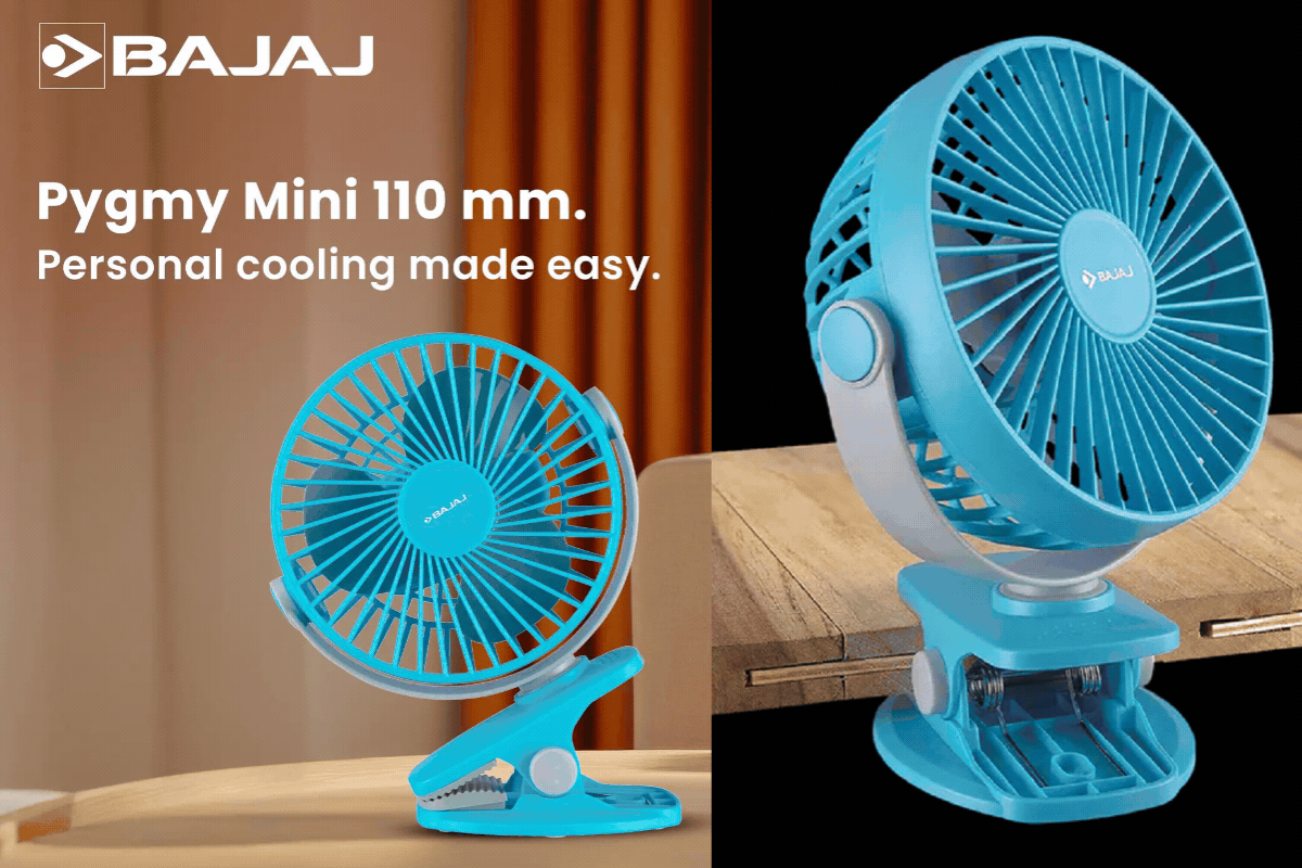 Bajaj Pygmy Mini Fan एक भरोसेमंद ऑप्शन है, जिसमें इनबिल्ट बैटरी मिलती है और बिजली जाने पर भी कई घंटे चलता है.