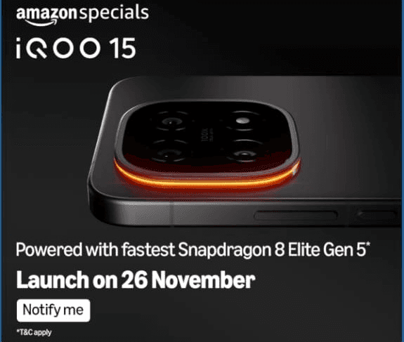 Realme के बाद गेमर्स के लिए iQOO भी अपना नया गेमिंग मॉडल लॉन्च करने वाला है. 26 नवंबर को कंपनी अपना नया मॉडल iQOO 15 भारत में लॉन्च करने वाली है. iQOO का नया मॉडल ऑफिशियल साइट के अलावा ई-कॉमर्स शॉपिंग साइट अमेजन पर लॉन्च होगा. शानदार डिजाइन के साथ iQOO 15 में भी Snapdragon 8 Elite Gen 5 का दमदार प्रोसेसर मिलेगा. इसके अलावा इस मॉडल में 50MP ट्रिपल कैमरा, 32MP का सेल्फी कैमरा, 7000mAh की बैटरी और 8000mm का वेपर कुलिंग चेंबर मिलेगा.