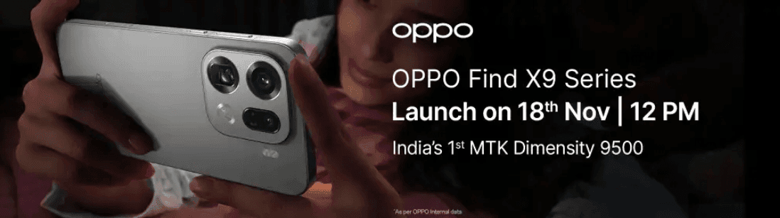 फोटोग्राफी लवर्स के लिए Oppo अपना नया सीरीज Oppo Find X9 Series लेकर आ रहा है. कंपनी 18 नवंबर को भारत में अपने इस नये सीरीज को लॉन्च करने वाली है. इस सीरीज को ऑफिशियल वेबसाइट के अलावा ई-कॉमर्स शॉपिंग साइट Flipkart पर लॉन्च किया जाएगा. इस सीरीज की सबसे बड़ी खासियत इसका कैमरा होने वाला है. क्योंकि, फोटोग्राफी लवर्स को प्रो मॉडल में हेसलब्लैड-ट्यून ट्रिपल कैमरा सेटअप मिलेगा, जिसमें एक 50MP Sony LYT-828 प्राइमरी सेंसर (OIS), 50MP ISOCELL अल्ट्रावाइड और एक 200MP टेलीफोटो लेंस (OIS) रहेगा. वहीं, फ्रंट के लिए भी 50MP का सेल्फी कैमरा मिलेगा. इसके अलावा फोटोग्राफी को बेहतर बनाने के लिए इमेजिंग इंजन Lumo भी मिलेगा. वहीं, यूजर्स को 7500mAh तक की बैटरी मिलेगी.