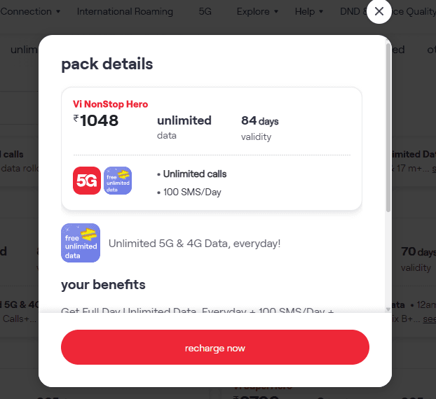 वीआई के पोर्टफोलियो में कई सारे 84 दिनों वाले प्लान लिस्टेड हैं, जिसमें से एक है 1048 रुपये वाला प्लान. इस प्लान में यूजर्स 84 दिनों तक किसी भी नेटवर्क पर अनलिमिटेड कॉलिंग, डेली 100 फ्री SMS और अनलिमिटेड डेटा का फायदा उठा सकते हैं. यानी कि आप जितना चाहे उतना डेटा इस दौरान यूज कर सकते हैं. फिर चाहे ऑनलाइन स्ट्रीमिंग हो या ऑनलाइन पढ़ाई बिना डेटा लिमिट की टेंशन लिए आराम से हो जाएगा.