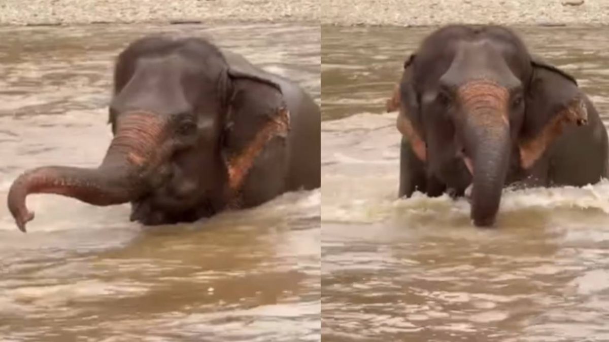 Viral Video: पानी देखते ही खुश हो गई नन्ही हथिनी, चहकते हुए नदी में लगाई मस्ती भरी डुबकी
