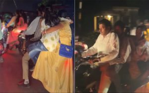 Also Read: What Is Moye Moye : मोये मोये क्या है और हर कोई इसके बारे में क्यों बात कर रहा है?वायरल हो रही क्लिप में आप देख सकते हैं कि चार लोगों का एक परिवार मोटरसाइकिल पर जा रहा है. चारों बाइक पर बस किसी तरह बैठे हुए हैं. बाइक चलानेवाला शख्स जहां टंकी पर बैठा है, वहीं एक महिला एकदम पीछे किसी तरह बाइक बैठी नजर आ रही है.