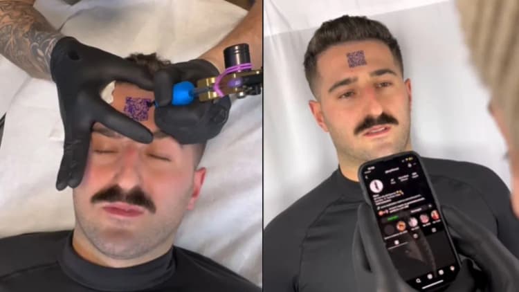 वायरल हो रहे इस वीडियो को इंस्टाग्राम पर यूनीलैड के हैंडल से शेयर किया गया है. माथे पर टैटू बनने की प्रक्रिया को दिखाते इस वीडियो में आदमी को थोड़ा दर्द भी होता हुआ दिखाई देता है. हालांकि पूरी प्रक्रिया खत्म होने तक आदमी शांत रहता है. टैटू आर्टिस्ट ने अपने इस वीडियो से लोगों को हैरान कर दिया है. इसमें दिखाया गया है कि QR कोड वाला टैटू आखिर काम कैसे करता है. आर्टिस्ट इस टैटू को स्कैन करता है, जिसके बाद शख्स का इंस्टाग्राम अकाउंट खुल जाता है. वीडियो के लास्ट में यह शख्स और टैटू आर्टिस्ट दोनों कैमरा की तरफ हंसते हुए दिखाई दे रहे हैं.