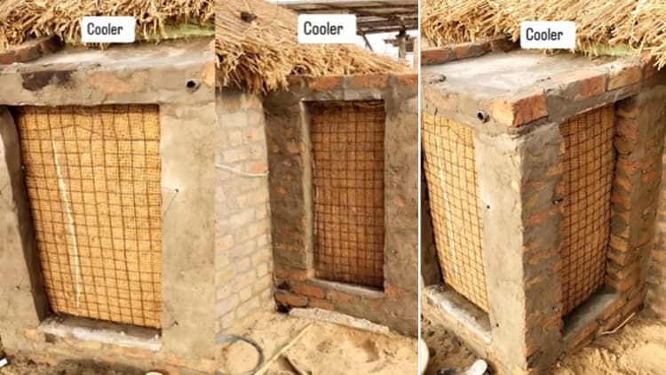 इस ईंट और सीमेंट से बने कूलर को बनाने वाले व्यक्ति ने इसे अपने लिए नहीं बल्कि अपनी गायों और भैंसों को गर्मी से राहत दिलाने के लिए तैयार किया है. तेज बढ़ती गर्मी का असर इंसानों के साथ-साथ जानवरों पर भी पड़ता है जिससे वे भी असहज हो जाते हैं. इसी बात को ध्यान में रखते हुए इस व्यक्ति ने अपने पशुओं के लिए ठंडक का इंतजाम किया है.