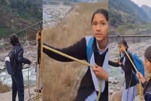 Watch Viral Video: वीडियो में दो बच्चियां खतरनाक रस्सी ट्रॉली के सहारे नदी पार करती नजर आ रहीं हैं, जो प्रशासनिक उपेक्षा का एक उदाहरण है.
