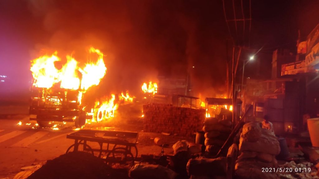 Jharkhand News, हजारीबाग न्यूज (जावेद इस्लाम) : झारखंड के हजारीबाग जिले में बुधवार की रात करीब साढ़े बारह से एक बजे के बीच एनएच-33, एनएच 31 व ओल्ड जीटी रोड पर स्थित बरही चौराहा पर वाहनों में भयंकर आग लग गयी. इसमें दो ट्रक, एक पिकअप वैन, एक ओमनी वैन व दो ठेला जलकर राख हो गए. चौक पर मौजूद ड्रम दुकान के कुछ खाली ड्रम भी जल गए. हालांकि घटना स्थल पर मौजूद सभी दुकान आग की चपेट में आने से बाल-बाल बच गए, नहीं तो जान-माल के भारी नुकसान की आशंका थी.