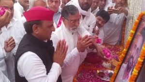 बलिया में छात्र नेता हेमंत यादव के गांव पहुंचे अखिलेश यादव, श्रद्धासुमन अर्पित कर दी श्रद्धांजलि