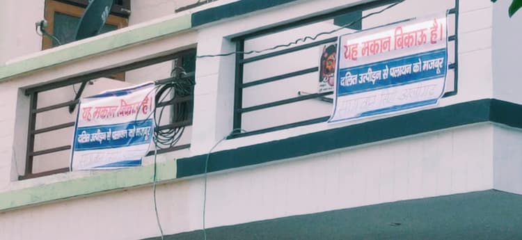 अलीगढ़ की रामघाट रोड से क्यामपुर के पास स्थित रिहायशी कॉलोनी सांगवान सिटी में फ्लैट मालिकों ने ‘उत्पीड़न से पलायन को मजबूर दलित, मकान बिकाऊ है’ के फ्लैक्स लगा रखे थे. फ्लैट में रहने वालों का आरोप था कि सांगवान सिटी के बिल्डर कॉलोनी के पार्क में डॉ. भीमराव अंबेडकर की जयंती नहीं मनाने दे रहे हैं. इस उत्पीड़न से नाराज दलित पलायन का मन बना रहे थे और अपने फ्लैट पर दलित, मकान बिकाऊ है लिख रहे थे.