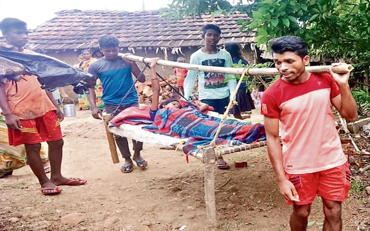 डेढ़ किलोमीटर तक खटिया पर मरीज को ढोया