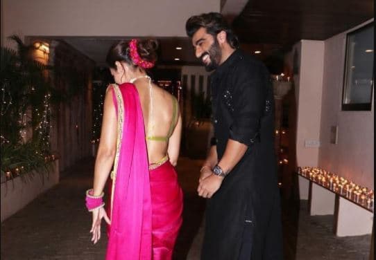 अर्जुन की चाची महीप कपूर, जो अभिनेता संजय कपूर की पत्नी हैं, ने पोस्ट पर दिल से इमोजी के साथ प्रतिक्रिया दी है. ताहिरा कश्यप ने भी एक दिल का इमोजी शेयर किया, जबकि ईशा गुप्ता ने एक दिल-आंखों वाला इमोजी साझा किया. मलाइका ने गुलाबी और ग्रीन कलर की डिजायनर मनीष मल्होत्रा की साड़ी पहनी थी, जिसे पारंपरिक हार और चूड़ियों के साथ जोड़ा गया था. अर्जुन ने ब्लैक कलर का कुर्ता-पायजामा पहना था.
