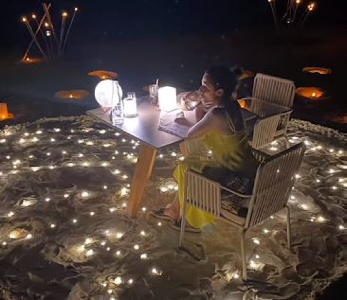 अर्जुन कपूर ने इंस्टाग्राम पर वीडियो शेयर करते हुए लिखा, “वह एक वाइब है … और यह फ्लीक पर है!” वीडियो के बैकग्राउंड में हार्डी संधू की बिजली बिजली चल रही है. इसमें मलाइका को पीले रंग के गाउन में नंगे पांव समुद्र तट की ओर चलते हुए देखा जा रहा है. जैसे ही वह डिनर डेट के पास पहुंचती है, उन्हें रेत पर परी रोशनी से बना एक बड़ा दिल मिलता है. इस दिल में सीटिंग अरेंजमेंट भी किया गया है. कुछ लैंप टेबल पर भी रखे गए हैं.