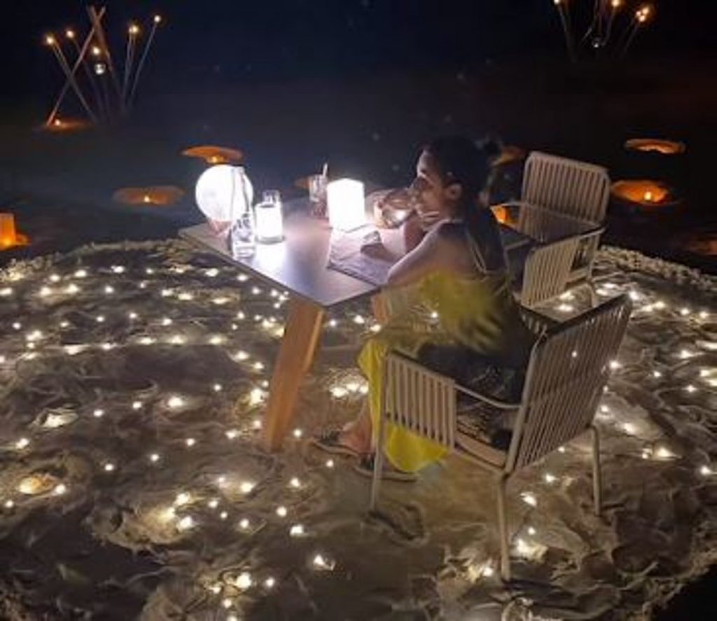 अर्जुन कपूर ने इंस्टाग्राम पर वीडियो शेयर करते हुए लिखा, “वह एक वाइब है … और यह फ्लीक पर है!” वीडियो के बैकग्राउंड में हार्डी संधू की बिजली बिजली चल रही है. इसमें मलाइका को पीले रंग के गाउन में नंगे पांव समुद्र तट की ओर चलते हुए देखा जा रहा है. जैसे ही वह डिनर डेट के पास पहुंचती है, उन्हें रेत पर परी रोशनी से बना एक बड़ा दिल मिलता है. इस दिल में सीटिंग अरेंजमेंट भी किया गया है. कुछ लैंप टेबल पर भी रखे गए हैं.