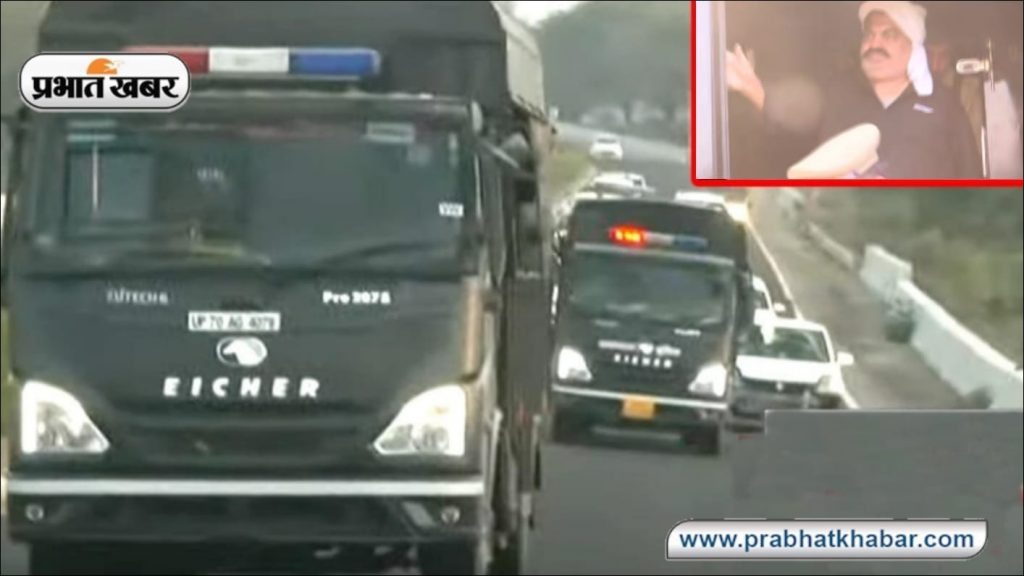 Prayagraj: उमेश पाल अपहरण कांड मामले में आरोपी अतीक अहमद को गुजरात के साबरमती जेल से प्रयागराज लाया जा रहा है. रविवार शाम यूपी एसटीएफ की टीम अतीक को कड़ी सुरक्षा के घेरे में लेकर प्रयागराज के लिए रवाना हुई. राजस्थान और मध्य प्रदेश से होता हुआ अतीक का काफिला सोमवार सुबह झांसी से यूपी की सीमा में दाखिल हुआ. जहां रिजर्व पुलिस लाइन में उसे रोका गया. करीब डेढ़ घंटे के बाद काफिला प्रयागराज के लिए रवाना हुआ.