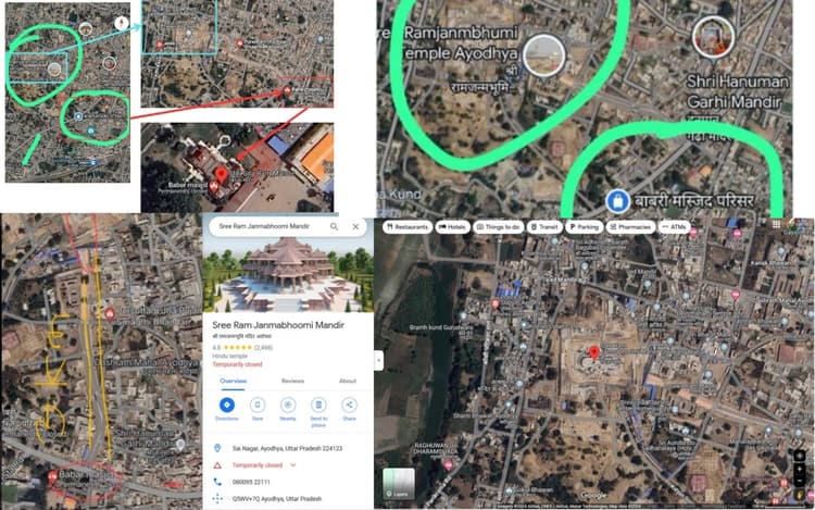 Ayodhya Ram Mandir: आज से सिर्फ 2 दिनों बाद यानी 22 जनवरी को अयोध्या में बन रहे राम मंदिर की प्राण प्रतिष्ठा होनी है. लेकिन इन सब के बीच सोशल मीडिया पर गूगल मैप का एक स्क्रीनशॉट वायरल हो रहा है, जिसके सहारे यह दावा किया जा रहा है कि जिस जगह पर बाबरी मस्जिद को ध्वस्त किया गया था, वहां से करीब 3 किलोमीटर दूर राम मंदिर बनाया जा रहा है. आपको बता दें कि गूगल मैप एक सॉफ्टवेयर है, जो लोकेशन की जानकारी देता है. यह गूगल का अपना खुद का सॉफ्टवेयर है. यह ऐप एक लोकेशन नेविगेशन में काफी मदद करता है. लेकिन कुछ लोग अब गूगल मैप का स्क्रीनसॉट लेकर सोशल मीडिया पर दावा कर रहे हैं कि राम मंदिर का निर्माण बाबरी मस्जिद की जगह नहीं बल्कि उससे 3 किलोमीटर दूर हो रहा है. इस दावे को आगे बढ़ाते हुए कहा जा रहा है कि जब विवादित स्थल से तीन किलोमीटर दूर राम मंदिर का निर्माण करना था, तो फिर बाबरी मस्जिद क्यों गिराई गई थी.
