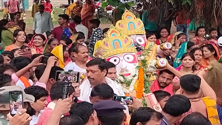 Jharkhand News: सरायकेला-खरसावां जिला अंतर्गत खरसावां के हरिभंजा स्थित प्रभु जगन्नाथ के प्रसिद्ध मंदिर में शनिवार को प्रभु जगन्नाथ की बाहुड़ा यात्रा श्रद्धा के साथ संपन्न हो गयी. शनिवार को देर शाम गुंड़िचा मंदिर से प्रभु जगन्नाथ की बाहुड़ा यात्रा निकाली गयी. इस दौरान प्रभु जगन्नाथ, बड़े भाई बलभद्र, बहन सुभद्रा एवं सुदर्शन को विशेष व्यंजन बना कर भोग लगाया गया. इसके बाद सेवायत एवं श्रद्धालुओं ने चतुर्था मूर्ति को रथ में बैठाकर गुंडिचा मंदिर से श्रीमंदिर तक पहुंचाए. इस दौरान काफी संख्या में लोगों ने महाप्रभु के दर्शन किए.