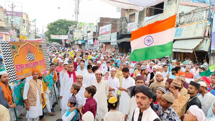 Bareilly News: दरगाह आला हजरत के प्रमुख मौलाना सुब्हान रजा खां (सुब्हानी मियां) और सज्जादानशीन मौलाना अहसन रजा कादरी (अहसन मियां) की कयादत में अंजुमन खुद्दामे रसूल के सदर सय्यद आसिफ मियां की निगरानी में मंगलवार शाम को कोहाड़ापीर से जुलूस-ए- मुहम्मदी शुरू हुआ.