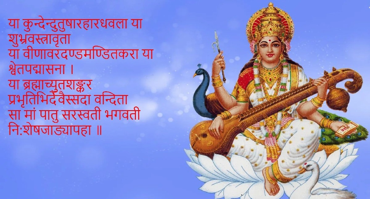 या कुन्देन्दुतुषारहारधवला या शुभ्रवस्त्रावृता.