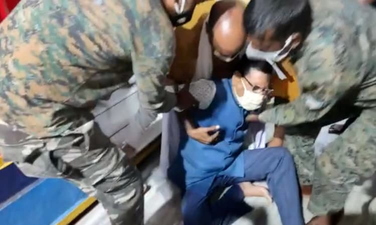 Dumka- Bermo By Election 2020 : रजरप्पा (सुरेंद्र कुमार/शंकर पोद्दार) : दुमका और बेरमो उप चुनाव से एक दिन पूर्व सोमवार (2 नवंबर, 2020) को झारखंड बीजेपी के प्रदेश अध्यक्ष सह राज्यसभा सांसद दीपक प्रकाश मां छिन्नमस्तिके से आशीर्वाद लेने रजरप्पा पहुंचे. श्री प्रकाश के साथ उनकी पत्नी शिवानी प्रकाश भी मां से आशीर्वाद लिया. इस दौरान मां छिन्नमस्तिके देवी की विधिवत पूजा-अर्चना की और संध्या आरती में शामिल भी हुए. हालांकि, मंदिर परिसर से निकलते वक्त जैसे ही वे बाहर निकले, सीढ़ी में उनका पांव फिसल गया. जिससे वे गिर गये. इसके बाद यहां मौजूद कार्यकर्ताओं ने उन्हें तुरंत उठा लिया. हालांकि इस घटना से उन्हें चोटें नहीं आयी है.