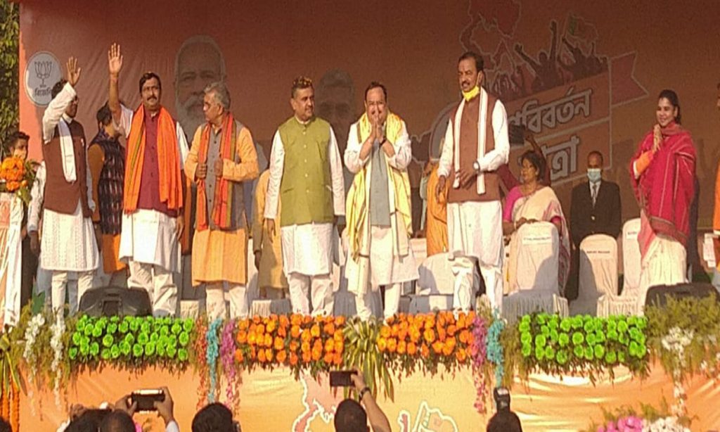 झाड़ग्राम जिला अंतर्गत लालगढ़ के विलेज मैदान में भाजपा के राष्ट्रीय अध्यक्ष जेपी नड्डा ने विधानसभा चुनाव में एक बार फिर से परिवर्तन की हुंकार भरते हुए कहा कि बंगाल अब परिवर्तन चाहती है. उन्होंने कहा कि बहुत हुआ ममताजी, बंगाल अब परिवर्तन चाहता है. तृणमूल सरकार पर ‘मां, माटी और मानुष’ के नारे की रक्षा नहीं करने का आरोप लगाते हुए कहा कि जब ममता सरकार इनकी सुरक्षा नहीं कर सकती, तो ऐसी सरकार को यहां से जाना ही बेहतर है.