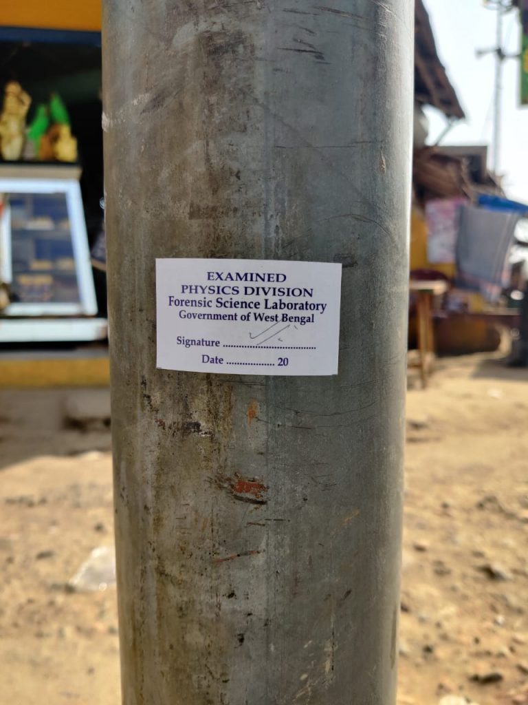 Poles in the area in Nandigram, where CM Mamata Banerjee was recently injured, examined by Forensic Science Laboratory, Government of West Bengal. pic.twitter.com/iHlAmoJ6vg