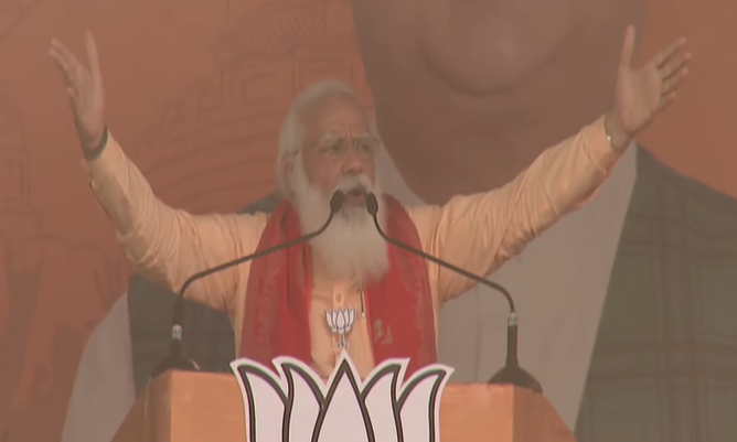 प्रधानमंत्री ने कहा कि पहले चरण की वोटिंग होने के बाद ममता की बौखलाहट और बढ़ गयी है. कल ही दीदी ने देश के कई नेताओं को संदेश भेजकर मदद की अपील की है. जो लोग दीदी की नजर में बाहरी हैं, टूरिस्ट हैं, जिन्हें वो कभी मिलने तक का समय नहीं देती थीं, अब उनसे समर्थन मांग रही हैं.