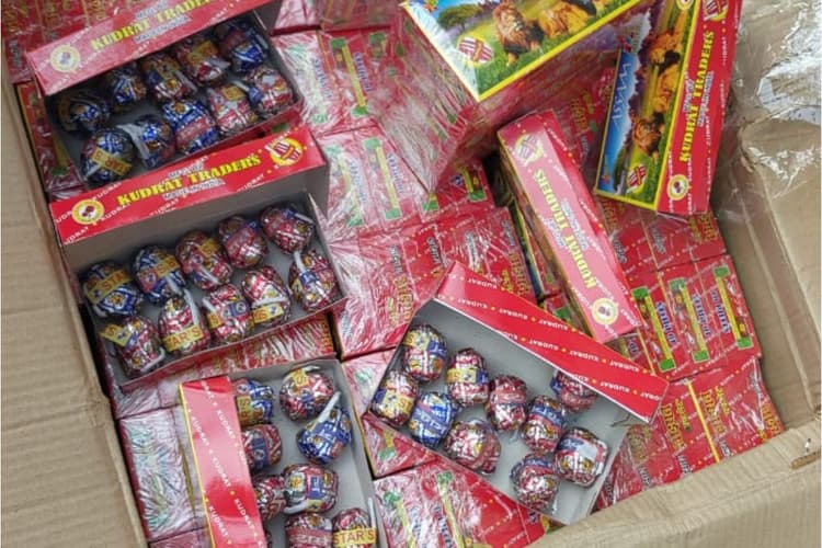 ट्रक की तलाशी ली गयी, तो उसमें से 45 कार्टून बॉक्स में भर्ती पॉप क्रैकर (आलू पटाखे) और 65 कार्टून बॉक्स में चॉकलेट बम बरामद हुए.
