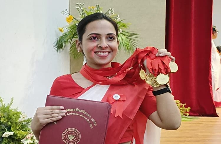 Agra: डॉक्टर भीमराव अंबेडकर के 88वें दीक्षांत समारोह, आगरा में गुरुवार को प्रदेश की राज्यपाल आनंदीबेन पटेल ने विद्यार्थियों को मेडल प्रदान किया. इस दौरान एमबीबीएस में 11 गोल्ड मेडल जीतने वाली गोल्डन गर्ल हुमा जाफर सुर्खियों में छाई रही. हालांकि राज्यपाल के हाथों सम्मानित होने के बावजूद हुमा जाफर को अभी भी विश्वविद्यालय के चक्कर काटने पड़ेंगे, क्योंकि अभी तक उन्हें मार्कशीट नहीं मिली है.