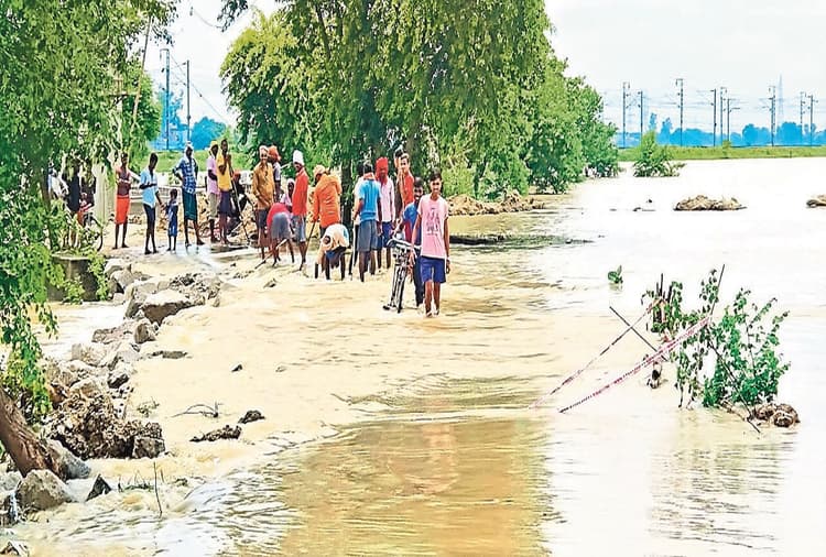 Also Read: UPSC की परीक्षा में बिहार का बजा डंका, टॉप-3 में लक्ष्मी नारायण ने बनायी जगहलगातार पिछले दो दिन से हुई बारिश (kaimur Rain) और दुर्गावती जलाशय से छोड़े गये पानी के कारण दुर्गावती नदी तबाही मचा दी है. आलम यह है कि कुदरा के अमिरथा से लेकर मोहनिया के अकोढी तक चारों तरफ पानी ही दिखाई दे रहा है. काफी दिन बाद इस तरह का दृश्य लोगों को देखने को मिला. दुर्गावती नदी के बढ़े जल स्तर से मोहनिया के अमेठ सहित कई गांव के प्रखंड मुख्यालय से संपर्क टूट गया है. लोग सड़क पर रिस्क लेकर बाइक व पैदल आ जा रहे है.