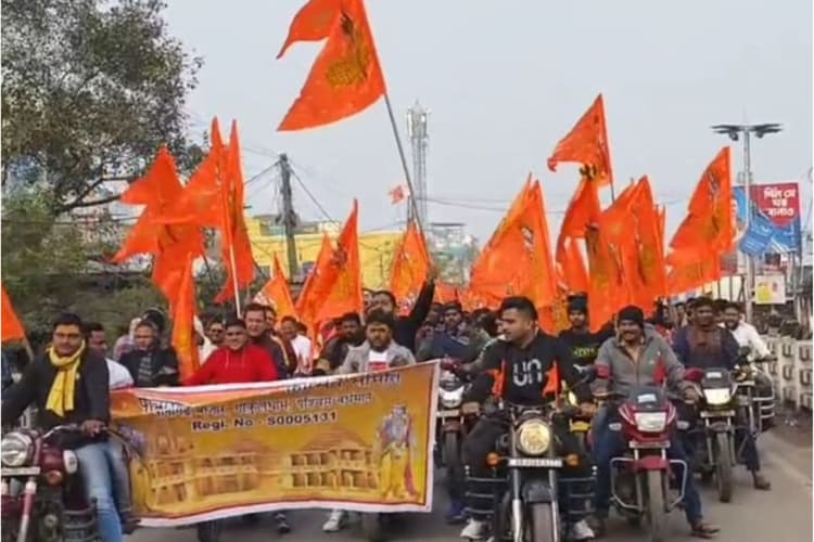 जयश्री राम के उद्घोष के साथ भक्तों ने निकाली बाइक रैली