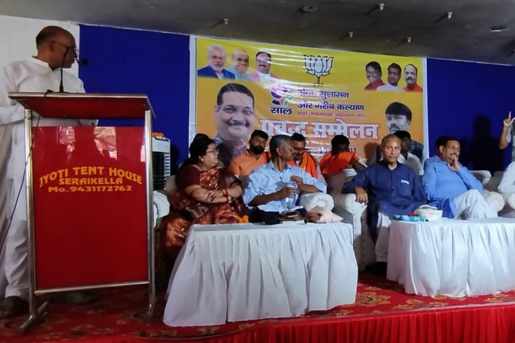 सरायकेला: स्थानीय अग्रसेन धर्मशाला में भाजपा जिला कमेटी द्वारा जिला स्तरीय प्रबुद्ध नागरिक सम्मेलन का आयोजन किया गया. सम्मेलन में मुख्य अतिथि के रूप में भाजपा प्रदेश अध्यक्ष दीपक प्रकाश उपस्थित थे. उन्होंने कहा कि प्रधानमंत्री नरेंद्र मोदी के नेतृत्व में नौ साल में सेवा, सुशासन और गरीब कल्याण का काम किया गया है. प्रधानमंत्री ने देश को तरक्की की राह पर आगे बढ़ाते हुए मेक इन इंडिया के तहत मेड फॉर ग्लोबल की राह पर अग्रसर किया है. उन्होंने कांग्रेस पार्टी पर हमला बोलते हुए कहा कि देश में 1975 में 25 जून को ही इमरजेंसी लागू करके लोकतंत्र की हत्या की गयी थी. संविधान की धाराओं के साथ मनमाने ढंग से छेड़छाड़ किया गया था. अभिव्यक्ति की आजादी पर पूरी तरह से पाबंदी लगा दी गयी थी. देश में प्रेस-मीडिया पर भी पाबंदी लगा दी गयी थी. इमरजेंसी के दौरान 1 लाख 27 हजार लोगों को नजरबंद कर दिया गया था.