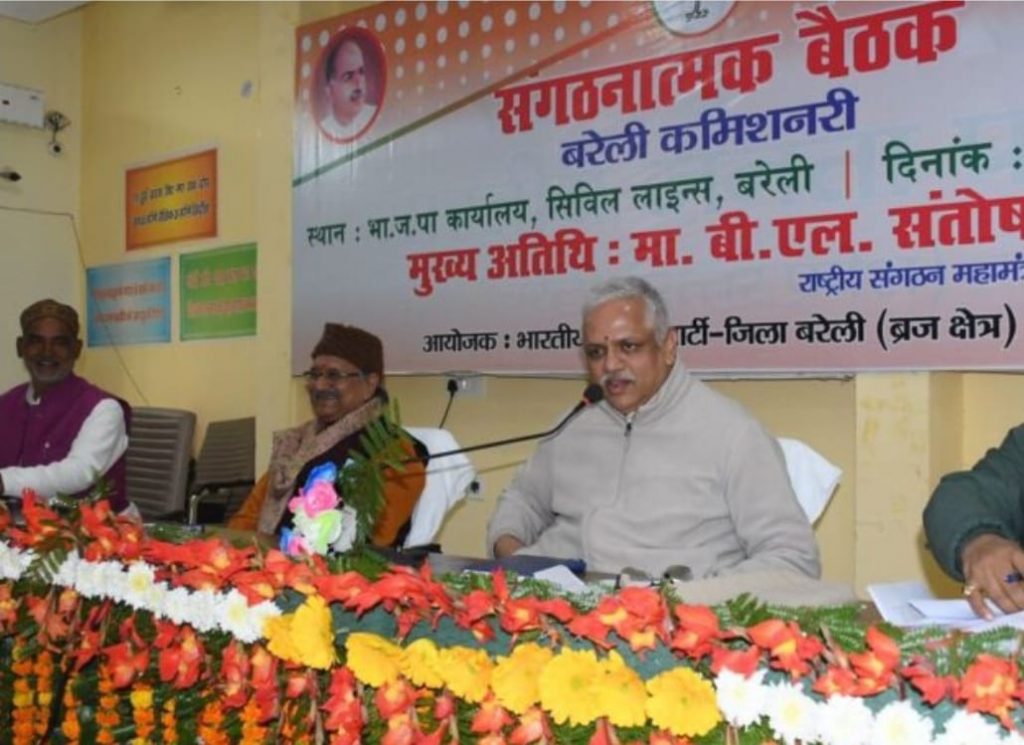 उत्तर प्रदेश के बरेली में भाजपा के राष्ट्रीय संगठन महामंत्री बीएल संतोष ने बरेली मंडल की 25 विधानसभा सीटों पर फरवरी के दूसरे सप्ताह में चुनाव होने की संभावना जताई है. उन्होंने जनप्रतिनिधियों और संगठन के पदाधिकारियों को चुनावी तैयारियां पूर्ण करने को कहा है. पार्टी कार्यकर्ताओं को बूथ मजबूत करने की सलाह दी.