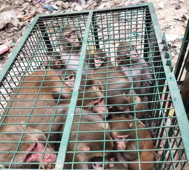 1235 आतंकी बंदरों को डाला पिंजरे के अंदर