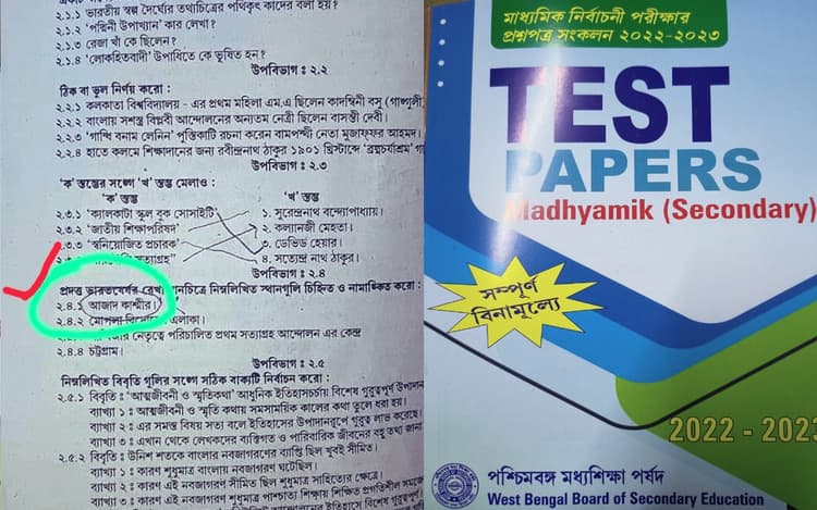 राज्य में माध्यमिक (10वीं) परीक्षा के मॉडल प्रश्नपत्र से जुड़ा एक चित्र सोशल मीडिया पर वायरल होने के बाद राजनीतिक विवाद शुरू हो गया है, जिसमें छात्रों से नक्शे पर ‘आजाद कश्मीर’ को चिह्नित करने के लिए कहा गया है. इस संबंध में पश्चिम बंगाल माध्यमिक शिक्षा बोर्ड के अध्यक्ष रामानुज गांगुली ने संपर्क करने पर स्वीकार किया कि स्वायत्त निकाय द्वारा प्रकाशित मॉडल प्रश्नपत्रों में गड़बड़ी हुई है और इसके लिए जिम्मेदार लोगों के खिलाफ कार्रवाई की जा रही है. श्री गांगुली ने कहा : हमने विभिन्न स्कूलों द्वारा प्रदान किये गये प्रश्नपत्रों का संकलन प्रकाशित किया है. ऐसे ही एक प्रश्नपत्र में इस गलती का पता चला. मामले की जांच की जा रही है और संपादकीय टीम के उन सदस्यों के खिलाफ कड़ी कार्रवाई की जायेगी, जिन्हें मॉडल प्रश्न पत्र की प्रूफ-रीडिंग का काम सौंपा गया था. उन्होंने बताया कि बोर्ड की वेबसाइट पर संशोधित प्रश्न पत्र जारी करने की प्रक्रिया चल रही है और गलती में शामिल लोगों को बख्शा नहीं जायेगा.