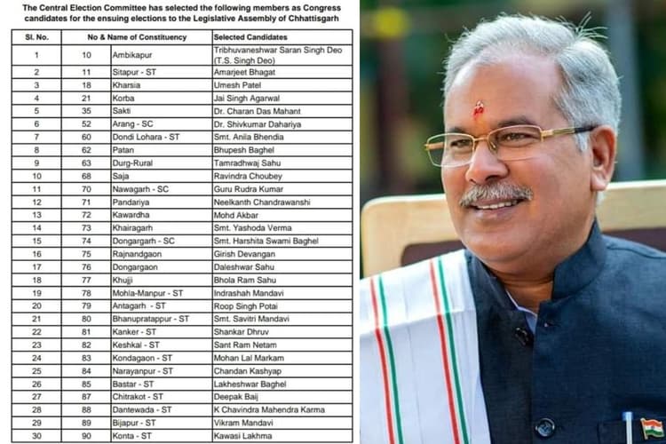 मालूम हो कि छत्तीसगढ़ में कुल विधानसभा सीटों की संख्या 90 है. फिलहाल 30 उम्मीदवारों की लिस्ट ही जारी की गई है. दूसरे चरण के लिए एक और सूची बाद में जारी की जाएगी. 30 उम्मीदवारों के नाम घोषित करते हुए छत्तीसगढ़ प्रदेश कांग्रेस कमेटी ने सभी प्रत्याशियों को बधाई एवं शुभकामनाएं दी. साथ ही कहा कि एक बार फिर छत्तीसगढ़ में कांग्रेस का परचम लहराने के लिए हम तैयार हैं. छत्तीसगढ़ में अभी कांग्रेस की सरकार है. वहीं, भाजपा मुख्य विपक्षी दल की भूमिका में है. राज्य में 2018 में हुए पिछले विधानसभा चुनावों में कांग्रेस ने 68 सीटें जीतकर 15 साल बाद सत्ता में वापसी की थी. वहीं, भाजपा को इस चुनाव में 15 सीटें हासिल हुई थीं.