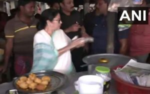 West Bengal : काफिला रोक चाय की दुकान में पहुंची मुख्यमंत्री, लोगों को बांटती नजर आई पकौड़े