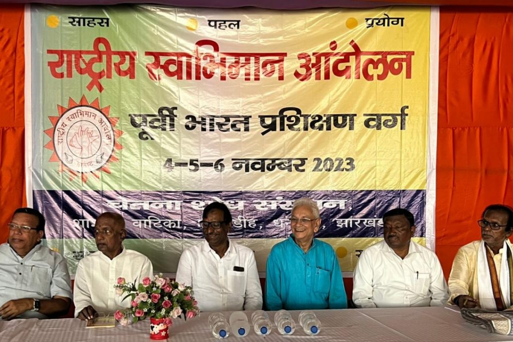चेतना शोध संस्थान के संस्थापक एवं राष्ट्रीय स्वाभिमान आंदोलन के पूर्वी भारत संरक्षक शैलेंद्र ने अतिथियों का स्वागत किया और प्रशिक्षण वर्ग की रूपरेखा पर विस्तार से प्रकाश डाला. उन्होंने कहा कि यहां से प्रशिक्षण प्राप्त कार्यकर्ता गांव में जाएंगे और व्यवस्था परिवर्तन की दिशा में लगेंगे. संगठन के कार्यकारी संयोजक सुरेंद्र सिंह बिष्ट एवं भाजपा नेता हरिप्रकाश लाटा ने हमारा लक्ष्य व्यवस्था परिवर्तन विषयक सत्र को संबोधित किया और वर्तमान राजनीतिक और सामाजिक व्यवस्था में बदलाव के कई महत्वपूर्ण सुझाव दिए. तृतीय सत्र में राष्ट्रीय सहसंयोजक पटना हाईकोर्ट के अधिवक्ता अरुण सत्यमूर्ति एवं विलियम हांसदा ने परिचय सत्र को संबोधित करते हुए राष्ट्रीय स्वाभिमान आंदोलन के कार्यकर्ताओं को उनके कर्तव्यों और अधिकारों का बोध कराया.