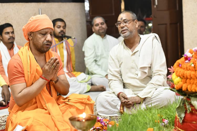 गोरखपुर : सीएम योगी आदित्यनाथ रविवार की रात शारदीय नवरात्र की अष्टमी तिथि को गोरखपीठ की परंपरा के अनुसार विधि विधान से पूजा अर्चन की और हवन किया. महानिशा पूजन अनुष्ठान से पूर्व उन्होंने वैदिक मंत्रों के बीच मां महागौरी की पूजा अर्चना की. सीएम योगी सोमवार की सुबह नवमी तिथि के मान में कन्या पूजन तथा मंगलवार को दशवी तिथि पर गोरख पीठ से निकलने वाली परंपरागत विजयदशमी शोभा यात्रा में शामिल होंगे.शारदीय नवरात्र के पावन पर्व पर मुख्यमंत्री एवं गोरक्षपीठाधीश्वर योगी आदित्यनाथ ने अष्टमी तिथि के मान में रविवार रात गोरखनाथ मंदिर के शक्तिपीठ में विशिष्ट महानिशा पूजा का अनुष्ठान पूर्ण कर लोक कल्याण की मंगलकामना की. रविवार पूर्वाह्न अयोध्याधाम से गोरखपुर पहुंचे. मुख्यमंत्री सोमवार सुबह नवमी तिथि के मान में कन्या पूजन तथा मंगलवार को दशमी तिथि पर गोरक्षपीठ से निकलने वाले परंपरागत विजयदशमी शोभायात्रा तक गोरक्षभूमि पर शक्ति की भक्ति में रत रहेंगे.