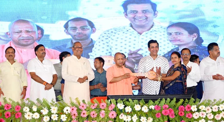 गोरखपुर : सोमवार को मुख्यमंत्री योगी आदित्यनाथ ने वीर बहादुर सिंह स्पोर्ट्स कॉलेज परिसर में आयोजित कार्यक्रम में प्रधानमंत्री आवास योजना(शहरी) के लाभार्थियों के खाते में सिंगल क्लिक से 51.52 करोड़ रुपए की धनराशि अंतरित की. प्रधानमंत्री आवास योजना के 5100 लाभार्थियों के बैंक खाते में अलग-अलग किस्त की राशि भेजी गई है. 250 लाभार्थियों को 50 हजार की दर से प्रथम किस्त, 2602 लाभार्थियों को 1.5 लाख की दर से दूसरी किस्त तथा 2248 लाभार्थियों को 50 हजार की दर से तीसरी किस्त की धनराशि भेजी गई है. इस दौरान मुख्यमंत्री ने प्रधानमंत्री आवास योजना के 12 लाभार्थियों को आवास की प्रतीकात्मक चाबी सौंपी.