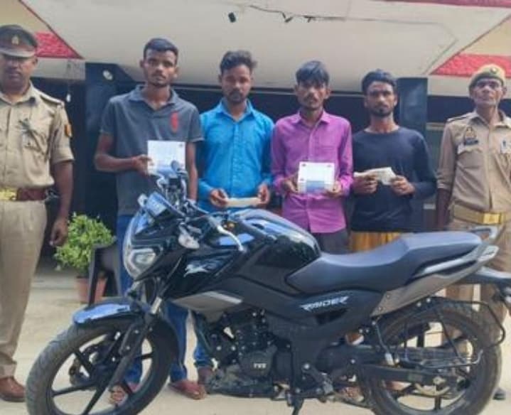 बरेली : उत्तर प्रदेश के बरेली की बिथरी चैनपुर थाना पुलिस ने गुरुवार को लूट करने वाले एक गैंग का पर्दाफाश किया है. पुलिस ने चार लुटेरों को हिरासत में लेकर घटना का खुलासा किया है. लुटेरों ने पुलिस को बताया कि घटना को अंजाम देने की साजिश जेल में रची थी.इसके बाद बरेली-शाहजहांपुर रोड पर स्थित इन्वर्टीश यूनिवर्सिटी के पास युवती से मोबाइल और चेन लूटी थी. पुलिस ने चारों लुटेरों को जेल भेज दिया है. इस मामले में बिथरी चैनपुर थाने के सब इंस्पेक्टर (एसआई) मनोज कुमार की ओर से एफआईआर दर्ज की गई थी. एफआईआर के मुताबिक पुलिस टीम गश्त कर रही थी.मुखबिर से सूचना मिली कि इन्वर्टीश यूनिवर्सिटी के पास महिला से लूट करने वाले लुटेरे किसी घटना को अंजाम देने की फिराक में हैं.पुलिस ने घेराबंदी कर गोपालपुर नगरिया मोड़ से भुता के मिर्जापुर गांव निवासी संतोष, ब्रजेश गंगवार, भगवानदास, और आंवला के कस्बा खेड़ा गांव निवासी मोबीन को गिरफ्तार किया है.पूछताछ में आरोपियों ने बताया कि जेल में उसकी दोस्ती हो गई थी.इसके बाद बाहर आने पर संतोष ने ब्रजेश, और भगवानदास से उसकी मुलाकात कराई थी.