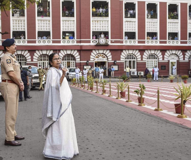 ममता बनर्जी ने अपने हाथ पर लगी धूल को अपनी सफेद साड़ी से पोंछा और अस्पतालों का निरीक्षण करने के लिए अपनी कार की तरफ बढ़ गयीं. मुख्यमंत्री स्थिति की समीक्षा करने और सम्मेलनों को संबोधित करने के साथ ही पिछले तीन सप्ताह से नियमित तौर पर लोगों को भौतिक दूरी बनाये रखने के तरीके समझाने का काम कर रही हैं.