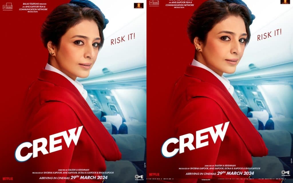 फिल्म ‘क्रू’ में तब्बू, करीना कपूर खान और कृति सेनन एयर होस्टेस के किरदार में है. पोस्टर में वो अपने ग्लैमरस और बदमाश अवतार में दिख रही है.