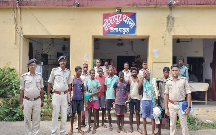 हत्या में नामजद आरोपी कालिदास सोरेन, प्रधान सोरेन, ताहा सोरेन, रमेश सोरेन, रामजी सोरेन, लीलू सोरेन, ईश्वर सोरेन, सोहेन हेंब्रम, बीपी सिंह सोरेन एवं दो महिला बाले किस्कू, चिन्नी मरांडी कुल नौ पुरुष और दो महिला को गिरफ्तार किया गया है. पुलिस ने सभी आरोपियों की स्वास्थ्य जांच कराकर मंडल कारा पाकुड़ भेज दिया गया. छापेमारी में एसडीपीओ नवनीत ए हेंब्रम, महेशपुर थाना प्रभारी संतोष कुमार, अमड़ापाड़ा पुलिस निरीक्षक सह थाना प्रभारी गोपाल कृष्ण यादव, हिरणपुर थाना प्रभारी सुनील कुमार रवि, महिला थाना प्रभारी ऋतु रानी, महेशपुर थाने के एसआइ ब्रजकिशोर सिंह, अभिषेक कुमार सहित जवान शामिल थे.