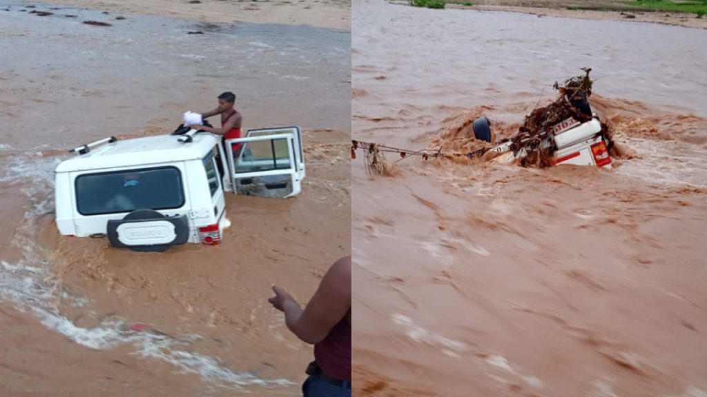 Cyclone Yaas Update News (लातेहार) : चक्रवाती तूफान यास के प्रभाव से लगातार हो रही बारिश के कारण कई नदियों में बाढ़ की स्थिति उत्पन्न हो गयी है. बुधवार की देर शाम सदर प्रखंड के हेसला गांव के पास धरधरी नदी में बारात लेकर जा रही एक बोलेरो (UP 64R 0321) बह गयी. हालांकि, इसमें किसी प्रकार के जानमाल का नुकसान नहीं हुआ. बोलेरो पर सवार सभी बाराती कूद कर अपनी जांच बचाने में सफल रहे.