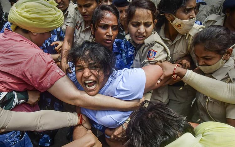 शीर्ष पहलवानों ने 23 अप्रैल को भारतीय कुश्ती महासंघ (डब्ल्यूएफआई) के प्रमुख बृजभूषण शरण सिंह को गिरफ्तार करने की मांग को लेकर अपना आंदोलन फिर से शुरू किया था. बृजभूषण पर एक नाबालिग सहित कई महिला पहलवानों के कथित यौन उत्पीड़न का आरोप लगा है. जंतर-मंतर पर अफरातफरी के बीच पहलवानों और पुलिस अधिकारियों ने एक-दूसरे को धक्का दिया और विनेश फोगाट और उनकी बहन संगीता फोगाट ने बैरिकेड तोड़ने की कोशिश की.