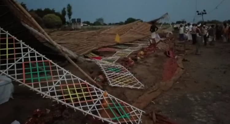 लेकिन 10 मिनट की आंधी भी नहीं झेल पाया और भरभरा कर पंडाल ताश के पत्तों की तरह गिर गया. इस कार्यक्रम में बागेश्वर धाम के पीठाधीश्वर आचार्य धीरेंद्र कृष्ण शास्त्री के आने की भी बात कही गई थी. कार्यक्रम में आई भक्त डॉ राधा भारद्वाज ने बताया कि हरदासपुर में तेज हवा चल रही थी. इस दौरान भागवद कथा चल रहा था. इसमे गोवर्धन लीला का वर्णन किया जा रहा था . जो वास्तव में सार्थक हुआ. इन्द्र देवता के कुपित होने की बात चली, तभी आंधी – तूफान आ गया और यज्ञ शाला की पंडाल गिर गया. डॉ राधा भारद्वाज ने बताया कि इंद्र देवता का कोप है. लेकिन भगवान की कृपा से किसी को कोई चोट नहीं आई. केवल पूजा का पंडाल ही गिरा है.
