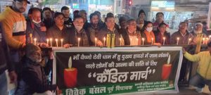 माता वैष्णो देवी धाम में हुए दु:खद हादसे में जान गंवाने वाले 12 श्रद्धालुओं की आत्मा की शांति और घायलों के शीघ्र स्वास्थ लाभ की कामना को लेकर अखिल भारतीय कांग्रेस कमेटी के विवेक बंसल, पूर्व विधायक के नेतृत्व में कैंडल मार्च निकाला गया. कैंडल मार्च मैरिस रोड से प्रारम्भ होकर सेंटर पॉइंट चौराहे पर पहुंचा. वहां कांग्रेसियों ने मृत श्रद्धालुओं की आत्मा की शांति और घायलों के शीघ्र स्वास्थ लाभ के लिए प्रार्थना की.