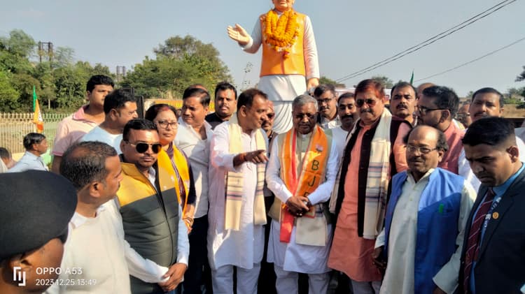 मौके पर धनबाद सांसद पशुपति नाथ सिंह और धनबाद विधायक राज सिन्हा ने भी माल्यार्पण किया. भाजपा धनबाद महानगर की ओर से बाबूलाल मरांडी को सम्मानित किया गया. बाबूलाल मरांडी ने कहा कि आज प्रधानमंत्री नरेंद्र मोदी अटल जी के छोड़े गए काम को आगे बढ़ा रहे हैं. देश प्रगति कर रहा है और आत्मनिर्भर बन रहा है. सांसद पीएन सिंह ने कहा की अटल जी की जयंती भाजपा सुशासन दिवस के रूप में मनाती है. विधायक राज सिन्हा ने कहा : अटल बिहारी वाजपेयी एक ऐसे व्यक्तित्व थे, जिन्हें पक्ष और विपक्ष हर कोई याद करता है. कार्यक्रम के अंत में गरीबों के बीच कंबल का वितरण किया गया. संचालन जिला उपाध्यक्ष उमेश यादव ने किया. मौके पर संजय झा, मानस प्रसून्न, नितिन भट्ट, मनोज मालाकार, अमलेश सिंह, सुमन सिंह, सतेंद्र ओझा, ललन मिश्रा, मनोज गुप्ता, पूर्व पार्षद अशोक यादव, रंजीत कुमार बिल्लू, पप्पू शर्मा, इन्द्रकांत झा, डॉ एम के वर्मा, बबलू सिंह, रजनीश तिवारी समेत ऋषभ कश्यप अन्य लोग उपस्थित थे.